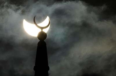 Estas fotos foram do último eclipse ocorrido no último 1 de agosto. Foi um eclipse total, visto apenas em algumas regiões do mundo.