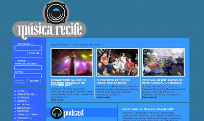 Músicas, artistas, shows, eventos, enfim, tudo que acontece na música recifense, pródiga em revelar talentos para o Brasil.
