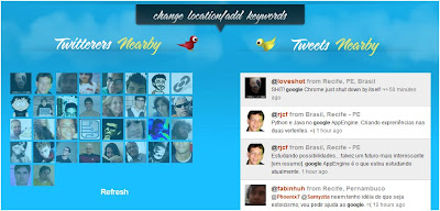 Nearby Tweets é mais uma daquelas ferramentas desenvolvidas a partir da API disponibilizada pelo twitter. Com ela você pode encontrar rapidamente outros usuários do twitter em sua cidade.