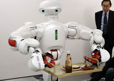 A universidade Waseda, no Japão, fez uma apresentação com o robô Twendy-One, desenvolvido para ajudar nas tarefas domésticas. Durante a demonstração, o humanóide de 1,5 metro e 111 quilos mostrou que sabe preparar torradas, salada, além de carregar uma bandeja e colocar seu dono para dormir.