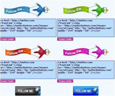 Está a procura por lindos badges para seu blog ou site? O Twitter Buttons tem uma incrível variedade de botões twitter para sua página web.